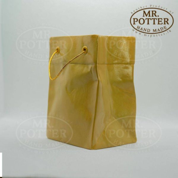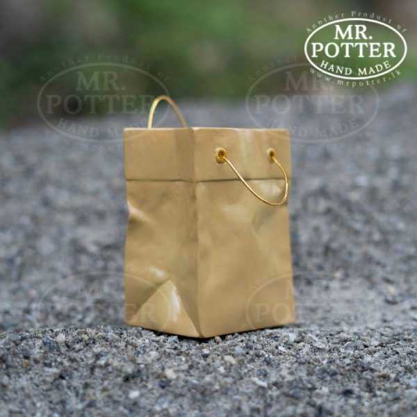Each piece is carefully handcrafted from natural clay, shaped to mimic the soft folds of a real gift bag, and finished in a golden tone that radiates warmth and prosperity. It transforms a simple desk accessory into a work of art — a blend of creativity, symbolism, and elegance that elevates any space.
