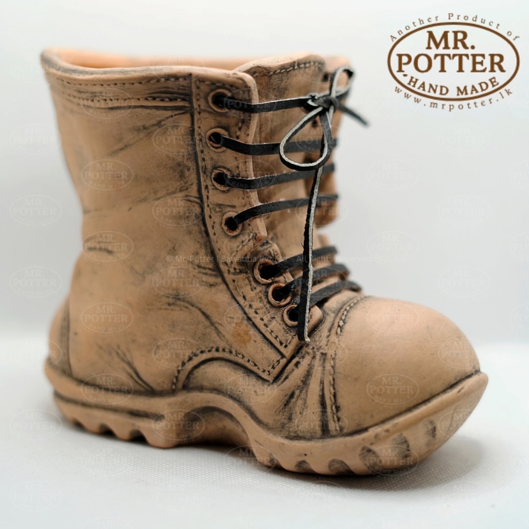 Add some rugged personality to your desk with the Mr. Potter Army Boot Pencil Holder. Expertly molded from clay to resemble a worn combat boot, this piece combines utility with artistic flair.