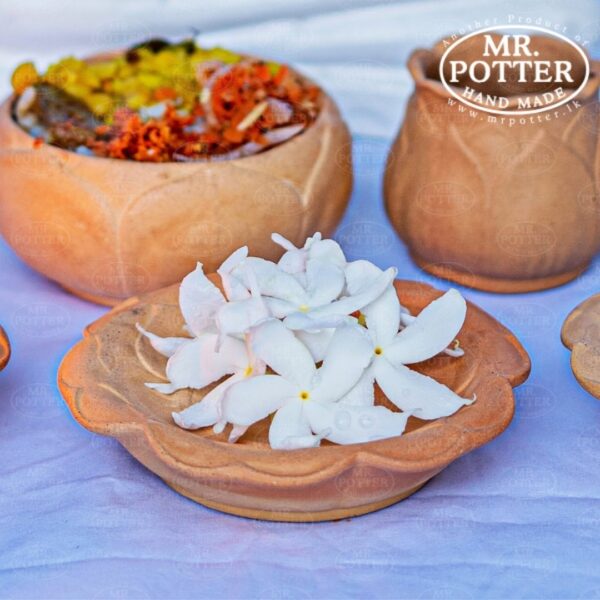 Enhance the sanctity of your worship or meditation space with the Mr. Potter Flower Plate (CAS1024). Expertly molded from natural terracotta, this earthenware tray is designed specifically for offering fresh flowers (“Mal Wattiya”) in a traditional and aesthetically pleasing way.