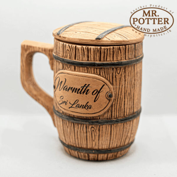 Handmade Ceramic Clay Wine Barrel Mug with Lid